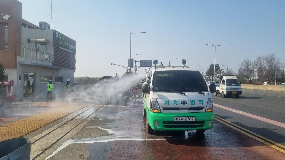 또한 외부에서 유입되는 바이러스를 차단하기 위해 입출입 차량에 대한 소독을 철저히 실시한다. 고양시를 출입하는 모든 축산 차량은 시 농업기술센터 내에 설치된 제1거점 소독시설에서 소독을 실시한 후 필증을 발급받도록 의무화했다.