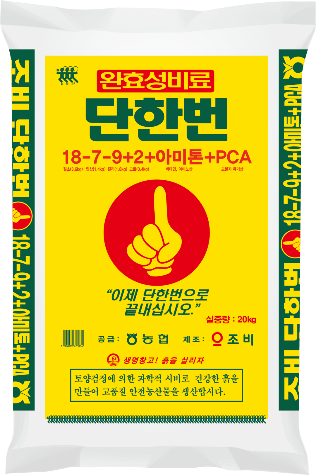 ‘단한번’은 질소, 인산, 칼리뿐 아니라 고토, 아미톤, PCA를 함유한 대표적인 완효성 비료다. 비료 성분이 작물 생육 단계에 맞춰 공급되도록 설계돼 벼에서는 이앙 후 활착과 분얼, 후기 생육 유지에 도움을 주며, 비료 입자가 균일하고 단단해 기계 살포와 측조시비에도 막힘이 적어 작업성이 좋다. 기능성 성분 아미톤은 작물의 종합대사를 활성화하여 생리장해를 줄이고, 양분 흡수효율을 높인다. 특히 단한번S는 생육기간이 짧은 조생종과 이모작 벼, 저온 지대의 생육 단계에 맞춰 설계되어있어 품종과 재배환경에 따라 유연하게 사용 가능하다.