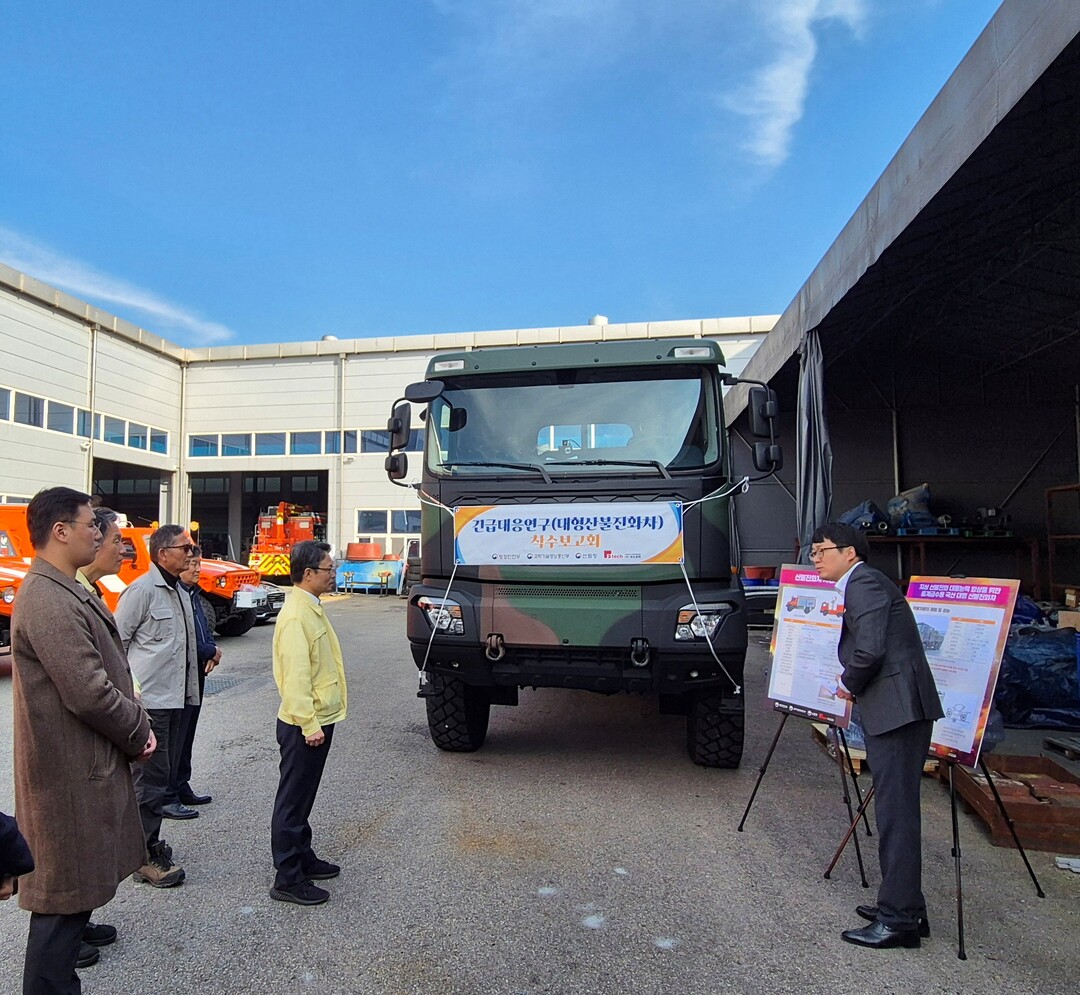 과학기술정보통신부(부총리 겸 과학기술정보통신부 장관 배경훈), 행정안전부(장관 윤호중), 산림청(청장 김인호)은 경기도 화성시 바이오밸리 소재 연구기관에서 대형헬기 물탱크의 2배에 달하는 물탱크를 탑재하면서도 차체와 특장을 모두 국산화한 ‘대형산불 진화차량’ 긴급대응연구의 현장 착수보고회를 공동 개최했다.