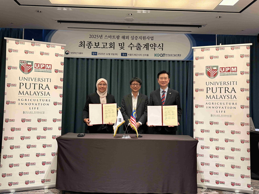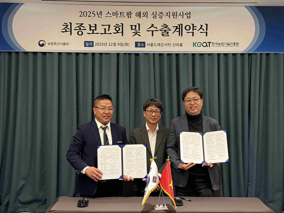 한국농업기술진흥원(원장 안호근, 이하 농진원)은 농림축산식품부(이하 농식품부)와 함께 12월 9일 서울 용산에서 ‘2025년 스마트팜 해외실증 지원사업 최종보고회’를 개최하고, 한 해 동안의 주요 성과를 공유했다.