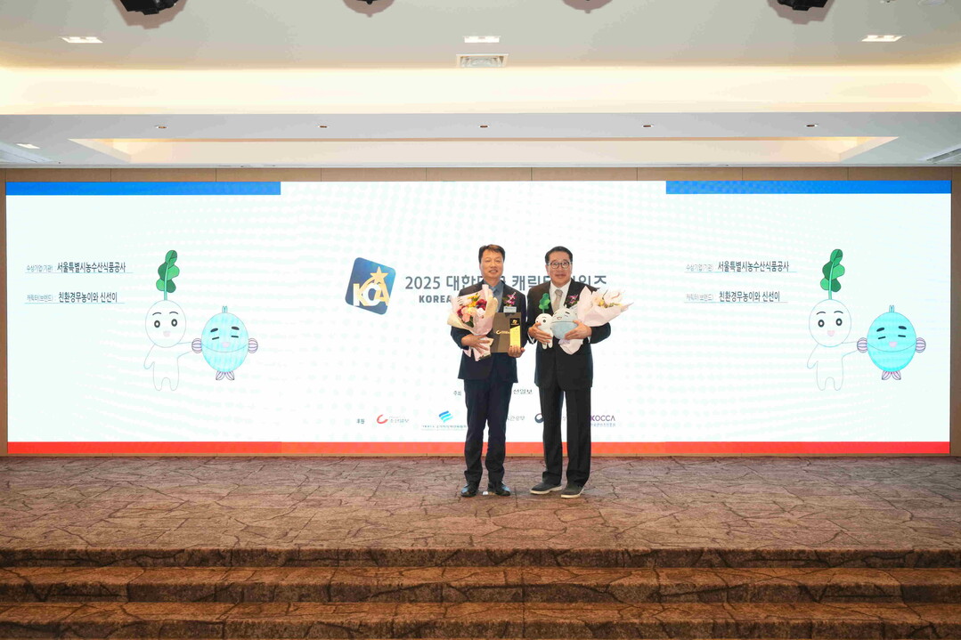 서울시농수산식품공사(사장 문영표, 이하 ‘공사’)의 신규 BI 캐릭터 친환경무농이와 신선이가 지난 11월 25일 조선일보가 주최한 ‘2025 대한민국 캐릭터 어워즈’에서 올해의 캐릭터 30선에 선정되어 대상을 수상하였다.