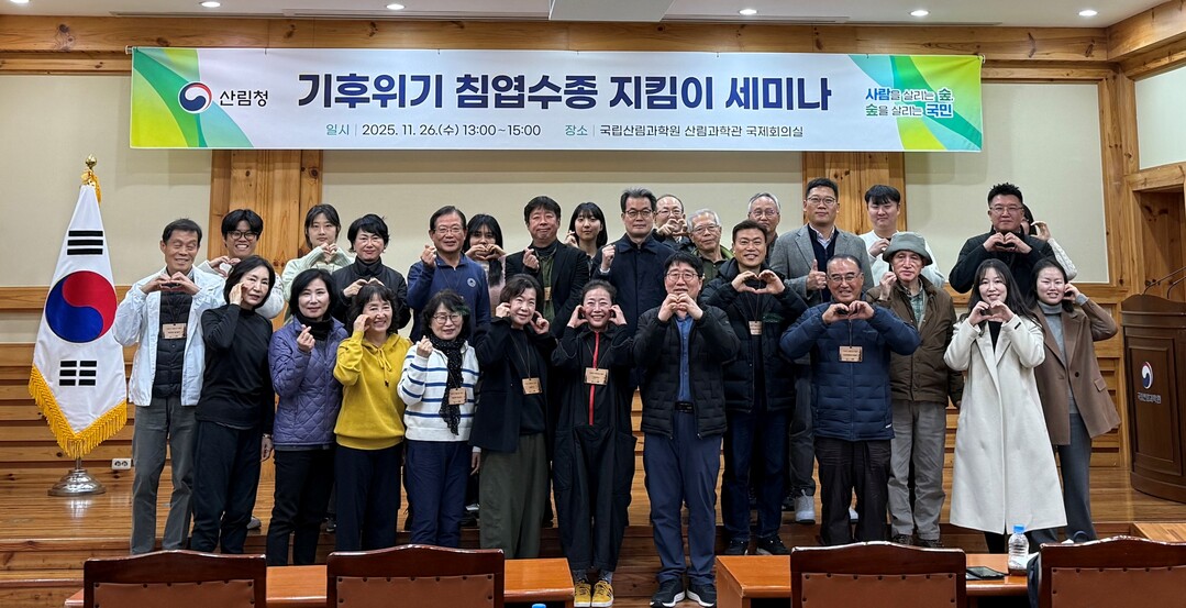 산림청(청장 김인호)은 국립산림과학원 국제회의실에서 ‘기후위기 침엽수종 지킴이 세미나’를 열고, 기후위기 대응을 위한 멸종위기 침엽수종 보전 전략과 2026년도 시민 참여 기반 활동 계획을 논의했다.