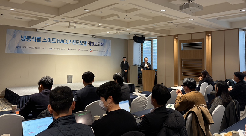 한국식품안전관리인증원(원장 한상배, 해썹인증원)은 씨제이제일제당과 함께 11월 26일(수)에 피스앤파크 컨벤션(서울 용산)에서 ‘냉동식품 스마트 해썹 선도모델 개발보고회’를 개최했다.