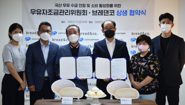 우유자조금관리위원회(위원장 이승호)는 베이커리 카페 브레댄코((bread&co. 대표 홍수현)와 국산 우유 수급안정 및 소비 촉진을 위한 상생 업무 협약을 7월 15일 체결했다.