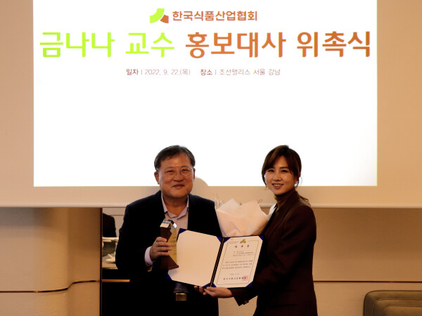 한국식품산업협회(회장 이효율)는 지난 22일, 조선팰리스 서울 강남에서 동국대학교 금나나 교수를, 협회 홍보대사로 임명하는 위촉식을 개최했다.